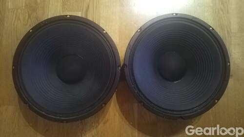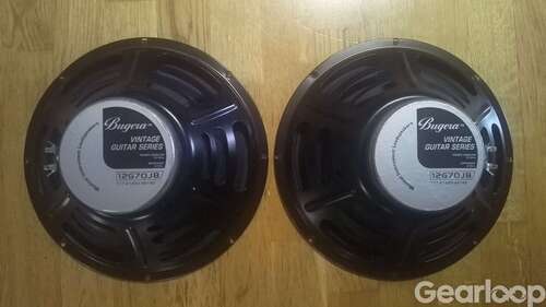 Två Bugera12" högtalare för gitarr. 70 w, 8 ohm. Har suttit i en 120 w rör combo så de tål rätt mycket.