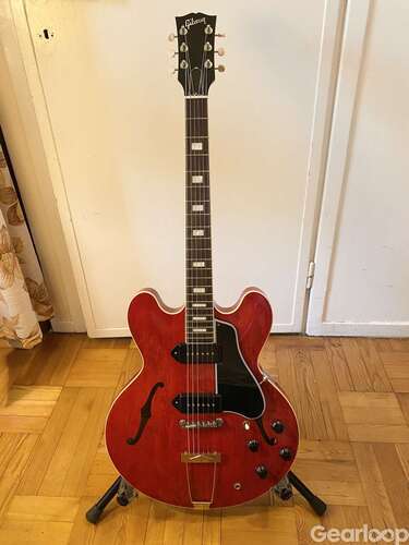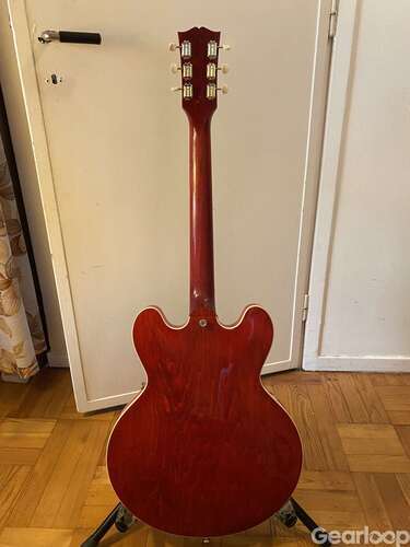 Gibson ES-330. Inköpt ny av mig på Musikbörsen i Örebro. En riktig rock n roll maskin. Lätt och bra ring i kroppen. Inga byten. Nytt fint hardcase