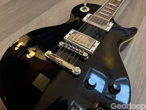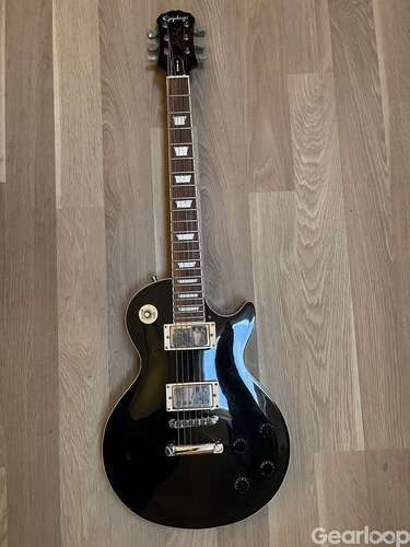 Epiphone Les Paul från den lilla och eftertraktade serie som byggdes i Tjeckien omkring millennieskiftet. Gitarren andas kvalitet, har bra mickar, bra mekanik med snygga tulip-stämskruvar och lång tenon för en robustare halsinfästning med högre hållfasthet och sustain. Halsen är slimmad och gitarren mycket lättspelad.