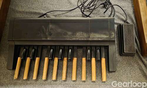 Komplett rigg med Oberheim OB-5 (Viscount-byggd Hammond-klon), original 17-tons pedalbord och Leslie 760 rotary speaker. Perfekt för studio, scen eller för den som vill ha autentiskt Hammond-ljud utan att behöva hantera vikten och underhållet av en vintage-orgel.