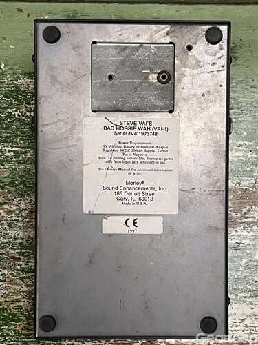 Morley Bad Horsie. Steve Vai’s WhaWha pedal som är i bypass när den är i upp läge. Spar tid när du får feeling! Den är i skick nästan som ny. Inget slitage på gummi eller så. 9 volts batteri eller vanlig standard adapter. Varit i studio enbart och används för lite. Från 1997.