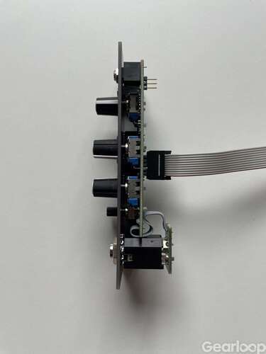 Rosie is an output interfacing module with the added functionalities of FX Loop, Crossfader and Auto-Cue system. It is designed to facilitate live performance on the modular synthesizer by allowing the artist to preview and modify portions of a patch using the Auto-CUE system, while the audience is listening to a different portion of the patch as selected by the crossfader. Additionally it allows for Stereo processing of all sounds via the FX Loop. The Rosie is suitable for headphone monitoring of the modular system and interfacing the modular system to a recording environment. Internal Level Matching and Limiting w/ overload indication makes it easy to connect the modular system in the studio or on stage.