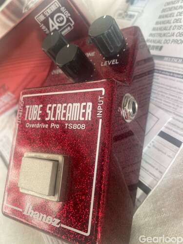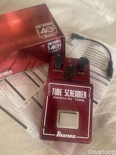 Röd metallic är snyggt även på en ts808. Som ny och låter som en ts ska. Jubileumsutgåva i kartong med papper och adapter att koppla till en ”normal” strömförsörjarkontakt.
