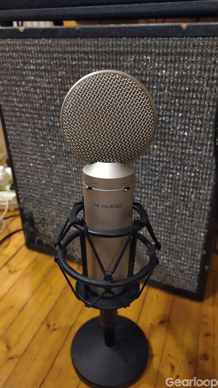 Har två st M-Audio Solaris som jag ska skiljas ifrån då nytt är på väg in. Fantastiskt fina mikrofoner, mkt välljudande. Modellen har transformator på utgång för extra mojo. Många lovordar modellen på Gearspace, för den som är lagd åt det hållet. Komplett med förvaringslåda samt upphängning.