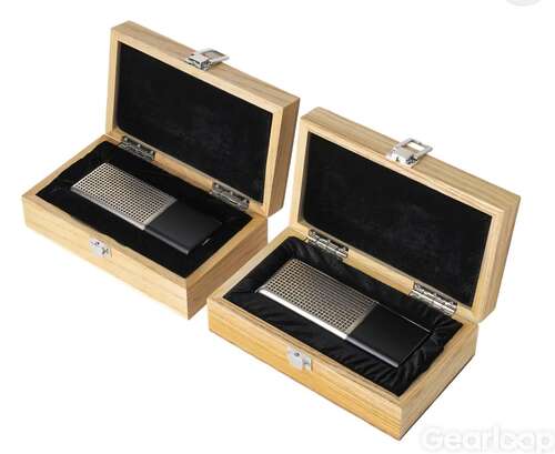 Säljes: Ett par Nude Rectangular Ribbon Microphones med tillhörande shockmaunts.
