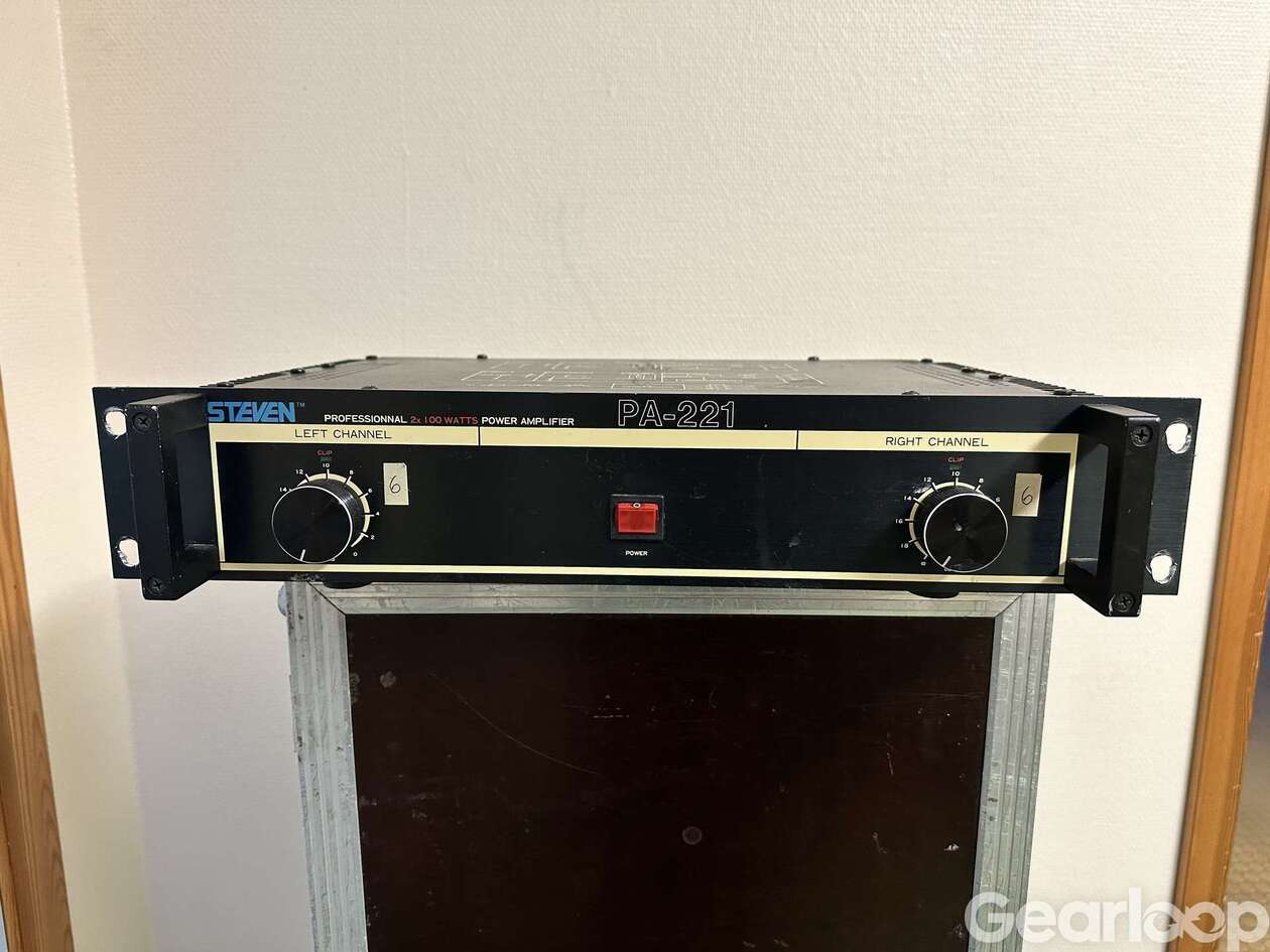 Steven PA-221 slutsteg i fullt fungerande skick. Stabil och lättanvänd förstärkare som passar bra till mindre PA-system, replokal, DJ-bruk eller installationer.