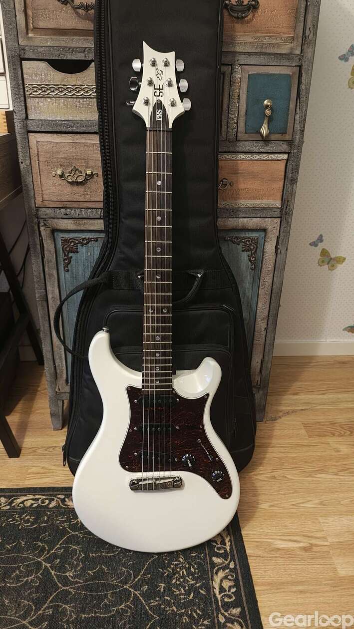 PRS SE EG i mycket gott skick, sparsamt använd, 3 st singelcoil, antikvit, hardtail. 22 band, kropp i mahogny, fin kraftig gigbag medföljer, skickar över fler bilder vid intresse, nya strängar