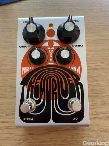 Harmonic tremolo och preamp i ett! Preampen fettar till och gör allt lite bättre och tremolot är i mitt tycke den perfekta flörten mellan förstärkartremolo och univibe. Har för många bra vobbelburkar så denna får glädja någon annan!