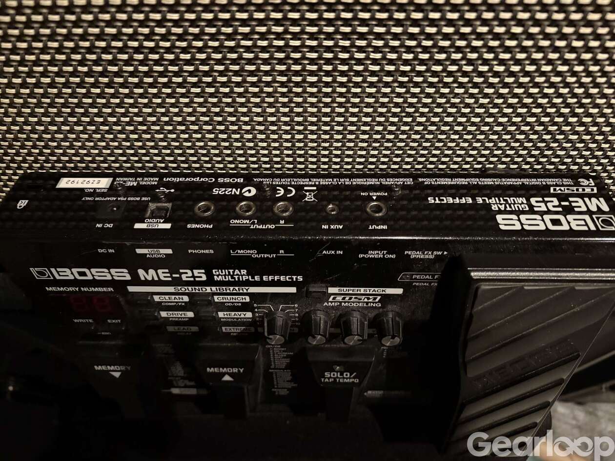 Med diverse olika overdrives, delay, reverb, chorus, flanger etc etc. Mycket möjligheter för pengarna och rejält byggd.