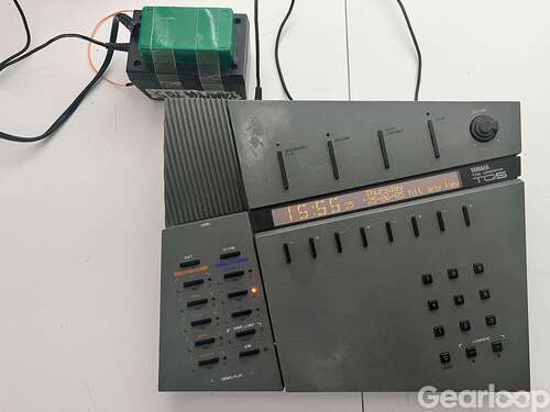 Lite repig Yamaha TQ5 - se bilden. Batteriet har bytts och sitter i en hållare. Fungerar utmärkt, skärmen är ljus och tydlig och synten låter som den ska.