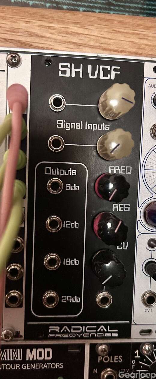 Klon av Rolands filter till SH-1, SH-7 samt System 700. 6, 12, 18, 24 db utgångar. Input kan drivas till att dista. Ej orginalrattar på bilden men har kvar dem.