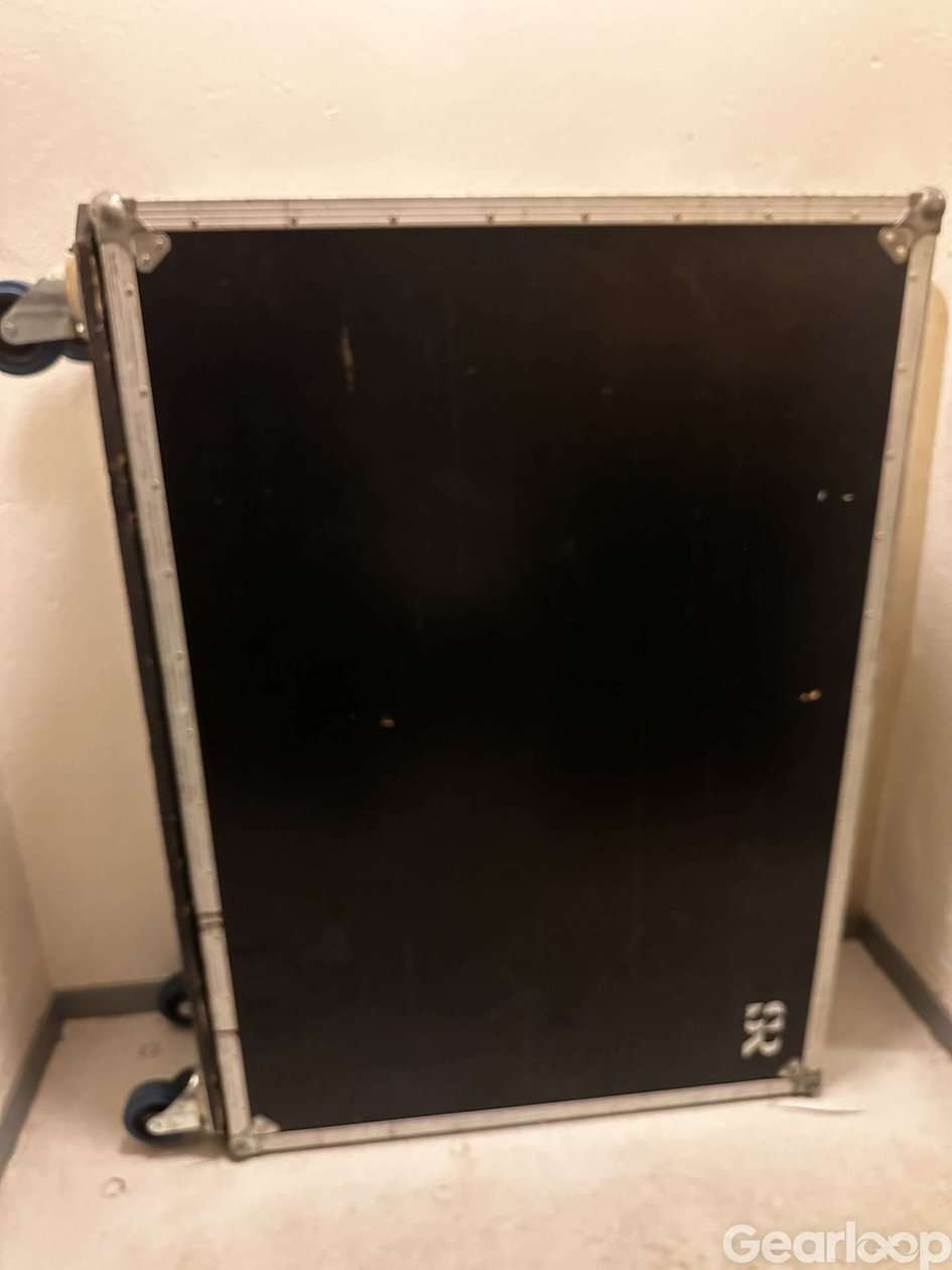 Utvändiga mått. 128x90x32cm. 105cm inkl hjul. Har huserat ett mackie 32.8 hos sveriges radio en gång i tiden. Klistermärken på köpet!