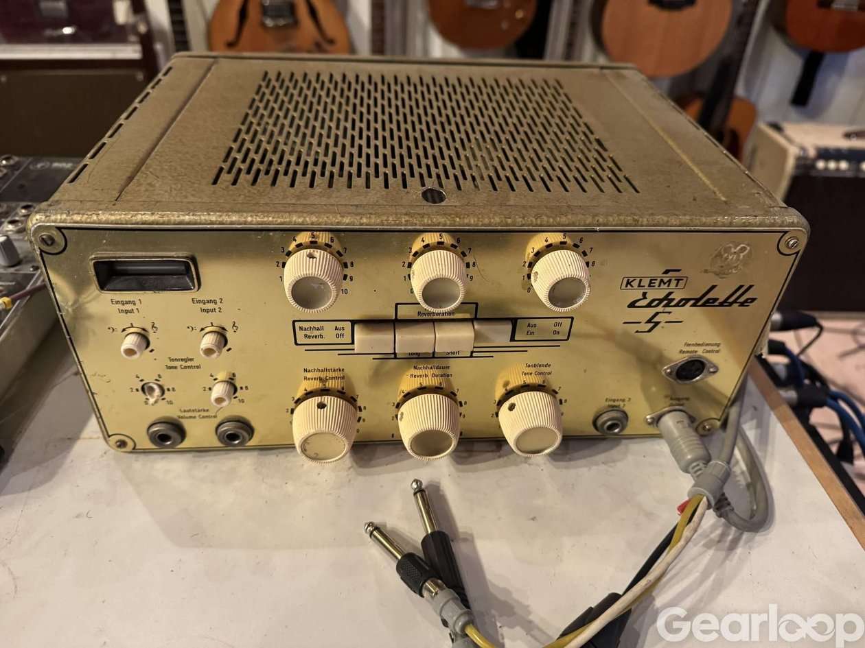 Klemt Echolette 5(NG51). Grymt tape echo som förstås låter toppen på gitarr men som också genom fin distortion värmer upp dina digitala spår. Slitet men fungerar och låter toppen. Utgång genom DIN-kontakt, kabel med RCA/tele-kontakter följer med. Liksom nätkabel.
