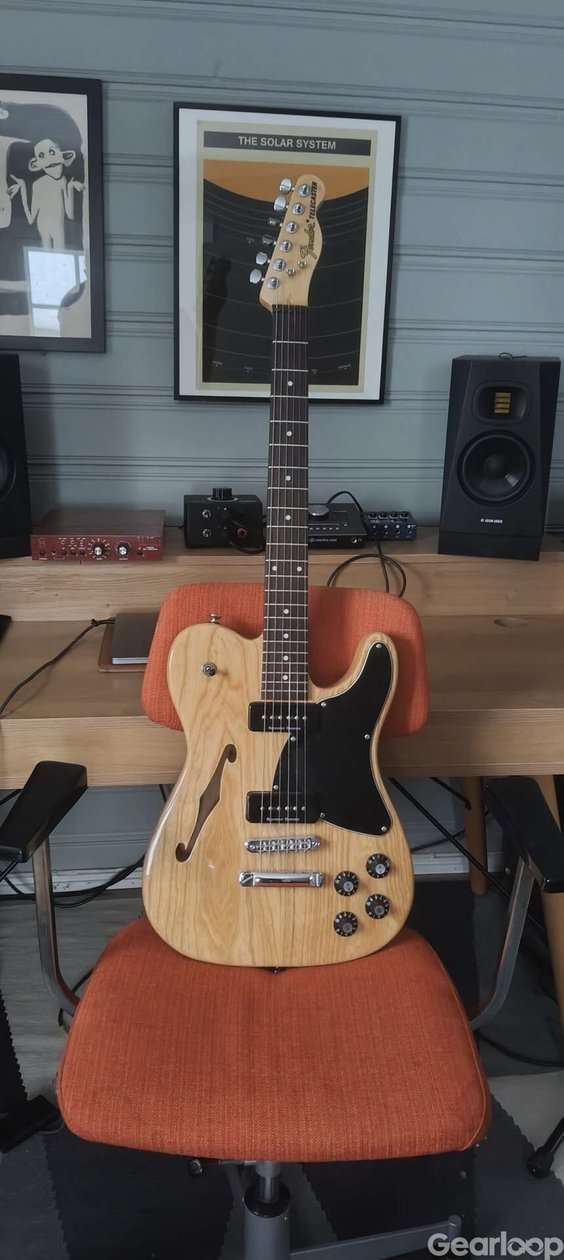 Suverän och lite annorlunda tele med set neck, P90s från Seymour Duncan och Adjusto-maticstall. Gitarren är i ett mycket fint skick, har fått bo i rökfri studio.