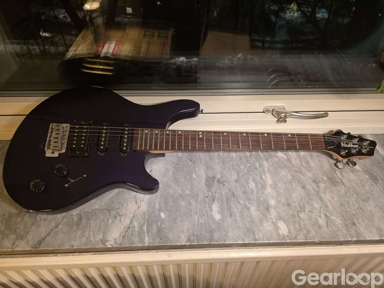 Säljer en Washburn Maverick Series elgitarr i snygg purple finish med HSS-setup (humbucker + single coils). Grym allround-gitarr.