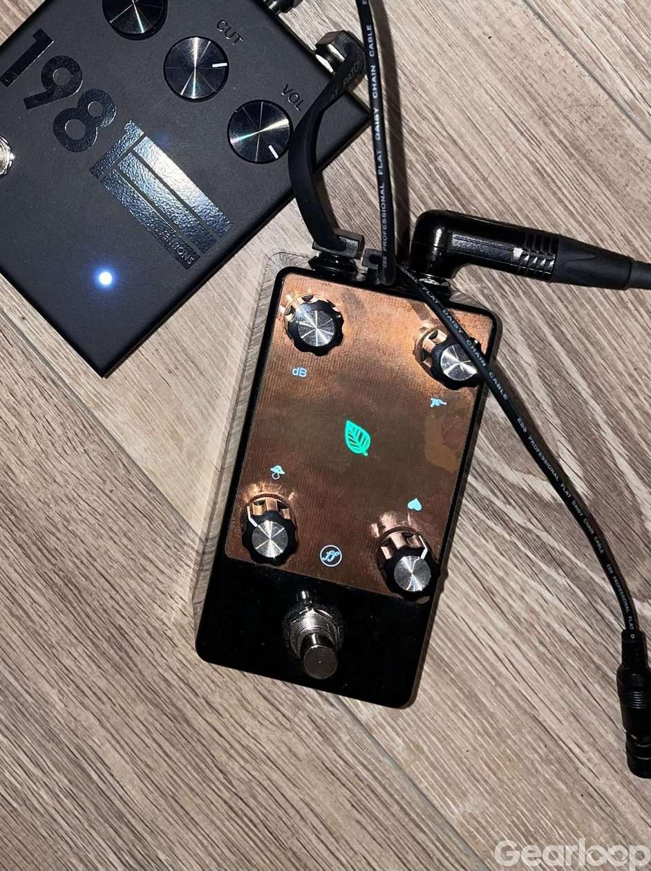 Pedalen är i fint skick. Kopparplattan har lite naturlig patina och åldras väldigt snyggt, vilket är helt enligt designen och hör till modellen.