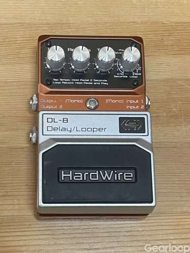 Digitech HardWire DL-8 Delay/Looper är en gitarrpedal med funktioner för delay och looping. Pedalen har reglage för Level, Repeats, Time och Modulated Reverse/Analog/Loop. Den är utrustad med ingångar och utgångar för anslutning till gitarr och förstärkare. Pedalen har en robust konstruktion med en yta för fäste av kardborreband under. Används för att skapa olika delay-effekter och loopa ljud.