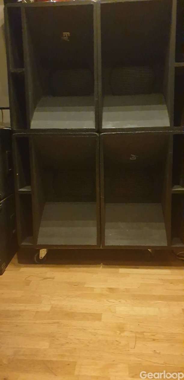 Altec horn modell 816 A med Electrovoice EVX-150A, program effekt 1000 Watt..98 dB, 30-1,800 Hz 8 Ohm. lådorna byggda av högtalartillverkare i Stholm efter ritning tillhandahålliet från Altec, byggt i lamellerad björk, betydligt bättre och dyrare än plywood/stummare och tåligare/. Högtalarna kan gå under 30 Hz. rek från 34~80-90 Hz. Finns 4st varav 2st är reserverade 7000kr st vid köp av 2 lådor, köp av 1st högt låda 10,000kr/ Orginal från Altec m 200 watts element kostar i USA 40,000-60,000 Skr/par. Säljes pga utrymmesskäl. Det finns även 3st Renkus-Heinz orginal fr USA, dubbel 18" m Ev proline element 10,000kr st. Alla dessa lådor spelar i proffs nivå. Kort tids lagnings garanti på samtliga högt. element. Specifcations handlingar till EVX-150A elementen medföljer. Alla priser inkl moms..och kan provlyssnas i Stockholm...
