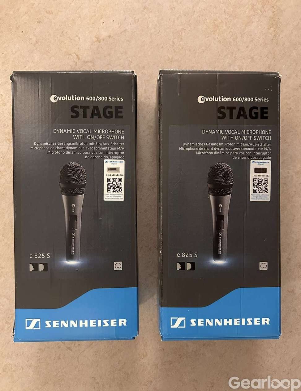 2 st Sennheiser e825S, knappt använda och i mycket bra skick. Kartong, fodral, mikrofonhållare, stativ och XLR-kablar ingår.