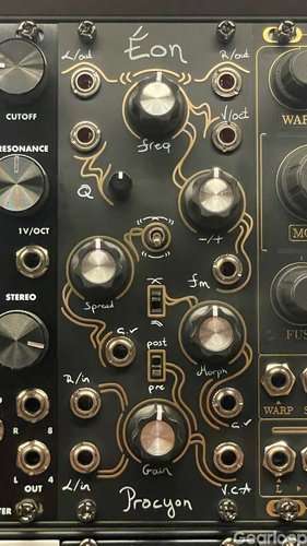 • Stereo VCA with soft saturation (pre or post filter routing)
