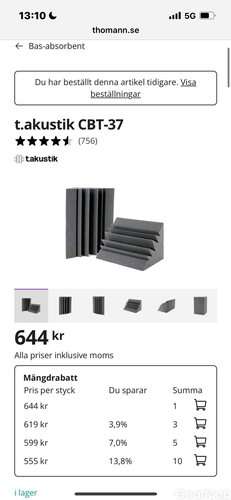 T.akustik CBT-37 bass traps 37x37x60 cm, nypris 644 kr