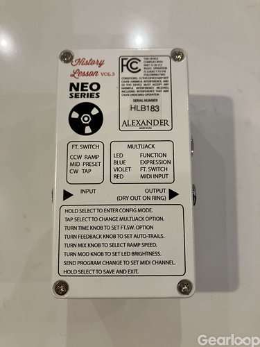 Delay från Alexander Pedals med 6st olika valbara typer av delay, med upp till ca 900ms delay och med tap tempo. Möjlighet att spara 4 presets (fler med MIDI-styrning)