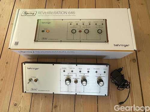 Behringer Spring Reverberation 646 i nyskick. Finfint fjäderreverb. Inköpt i höstas och knappt använd då jag inte får plats med den i hemmastudion. Kvitto med garanti finns kvar och kommer med kartong och PSU.