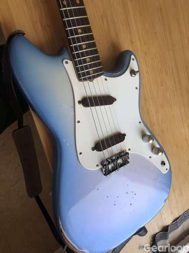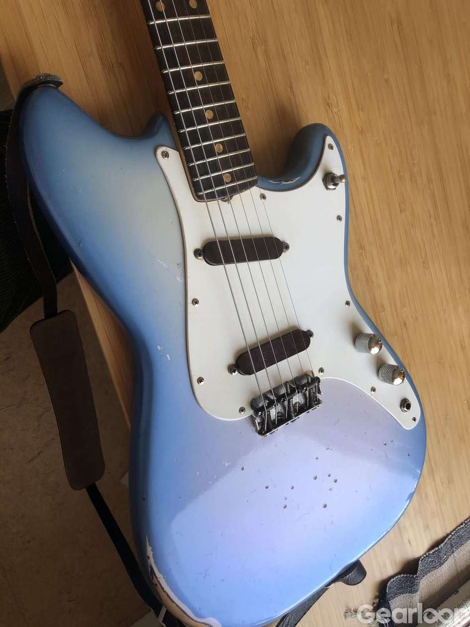 Säljer min Fender Duo-sonic från 1963. Den är omlackerad och har bytt elektronik, men pickuper är original. Mycket coolt sliten och härlig att spela på!