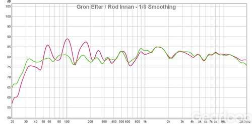 Bifogar bilder på min studio och dess frekvensgång utan subwoofer innan och efter min egna akustikbehandling. Kom gärna förbi och lyssna. Mitt rum är 3.5m x 3.5m meter betongbunker. Jag är belägen i Södra Stockholm bredvid kommunikationer, gratis kaffe och parkering.