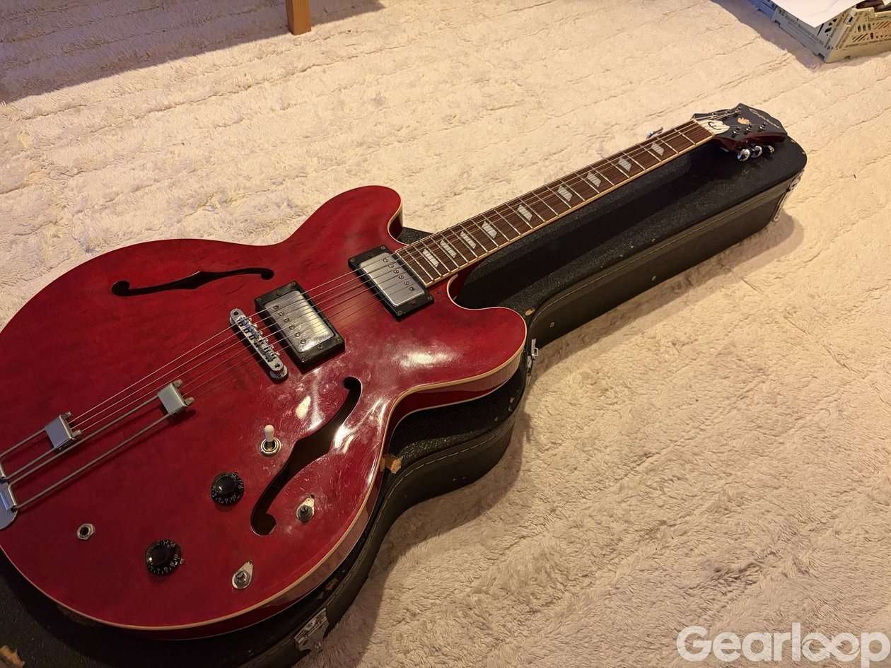 säljes i befintligt skick som är: plektrumskyddet saknas samt två rattar. har precis servats och spelar fint i övrigt. säljes inklusive hardcase. mickarna är humbuckers.