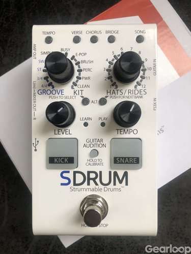 Rolig och välljudande trumpedal. Jag har använt den vid inspelning i hemmastudion. Fungerar som den ska. Inkl box men utan strömadapter. Går på vanlig 9v pedaladapter.