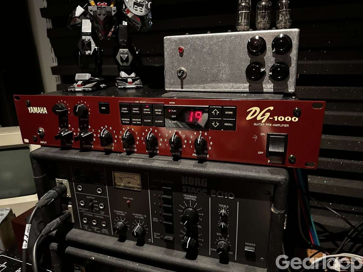 Yamaha DG-1000 är en rackmonterad digital gitarr-preamp med många grymma ljud, från clean till tung dist. Det som verkligen sticker ut är de motoriserade rattarna som rör sig automatiskt när du byter preset, så du alltid ser exakt vilka inställningar som används. Presets kan sparas och styras via MIDI. En stabil och pålitlig preamp som funkar lika bra i studio som live.