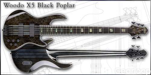 Superfin 5-strängad bas med poppel/askkropp och genomgående lönn/palisander hals med block inlägg av blå abalone. Transparent svart finish. Tajt B-sträng och bekväm hals. Aktiv 9 volts elektronik med 3-vägs EQ med aktiv/passiv switch då kan du köra antingen passivt eller aktivt.