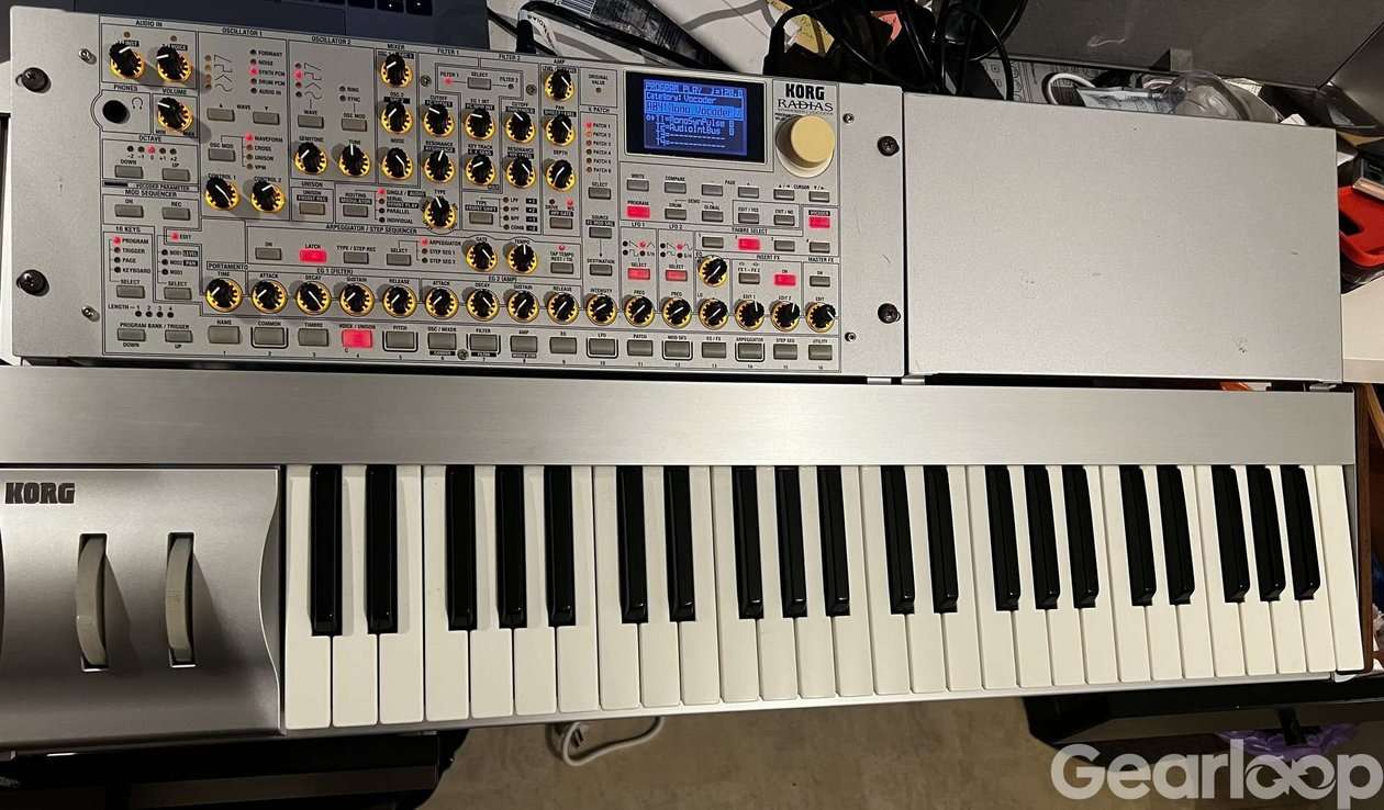 Korg Radias virtuell analog synth med vocoder och stepsequenser i bra skick. Alla knappar och tangenter fungerar utmärkt. Jog Wheel fungerar i stort sett men kan missa något knäpp på vridet ibland men inget stort problem.