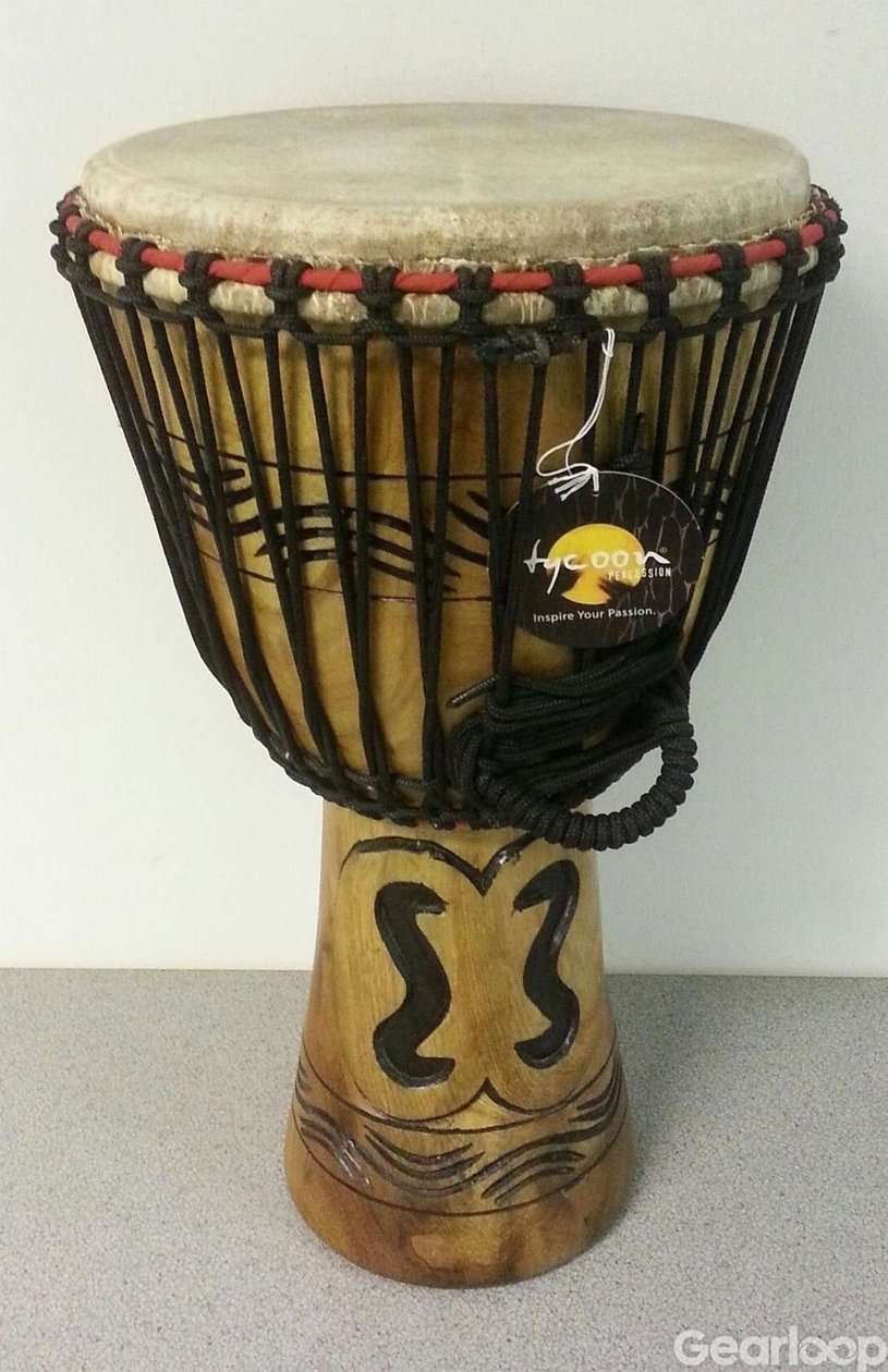 The Traditional Series African Djembe from Tycoon Percussion is an African djembe hand-carved in Ghana from a single piece of hardwood. This drum features an unbleached goat skin head with a 13" diameter, designed to provide superior tonal qualities. The 5mm non-stretch rope allows for easy and long lasting tuning.