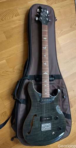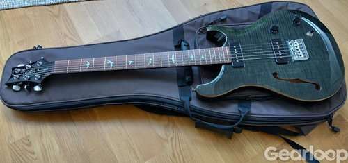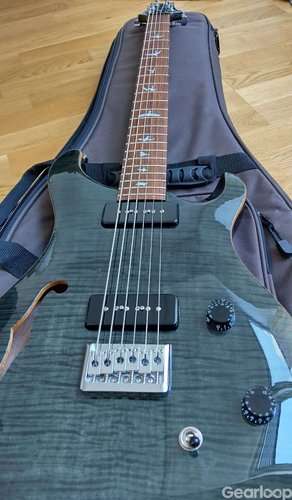 Ovanlig semi-hollow baritone från PRS med soapbar-mickar.