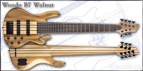 7-strängad elbas med valnöt-body och genomgående lönn/palisander hals. Lättspelad med fint och fokuserat ton. Speciellt givande instrument för ackordspel och tapping!