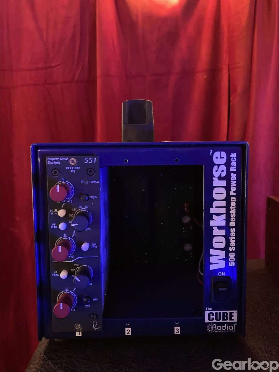 Säljer min Radial Workhorse The Cube i mycket fint skick. Ett portabelt 500-serie rack med plats för tre moduler, högkvalitativ strömförsörjning och balanserade anslutningar. Perfekt för både studio och live.