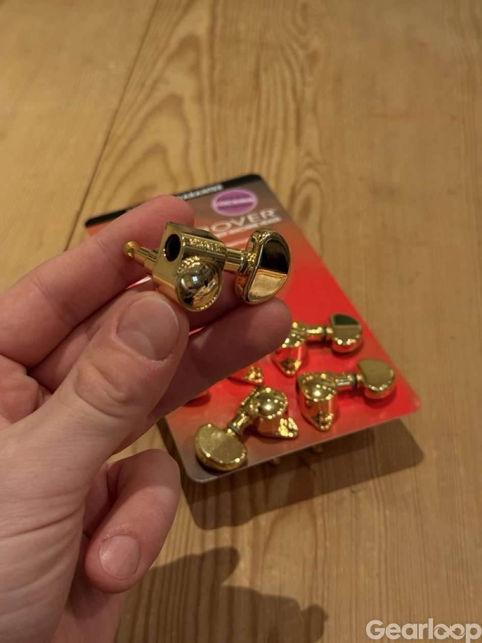 Säljer ett set Grover Rotomatics tuners i elegant guldfinish. Dessa satt originalmonterade på min nya Les Paul Custom, men jag föredrar locking tuners och har därför ersatt dem direkt.