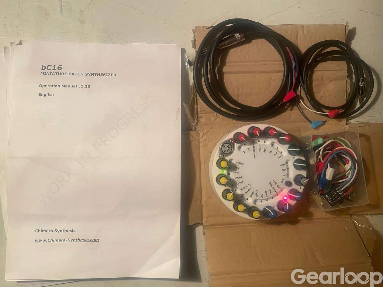 Funky, sällsynt. Levereras med 16 kablar varav 14st patchkablar (2mm banana), 1st inverterarkabel, 2st audiokablar (1/4-tums och 3.5mm). Ström via 6st AAA-batterier. Sägs gå att köra med DC via en hembyggd MIDI-kabel (som du alltså bygger hemma) men batteri är säkrare och ger renare ljud, rekommenderas därför inte.