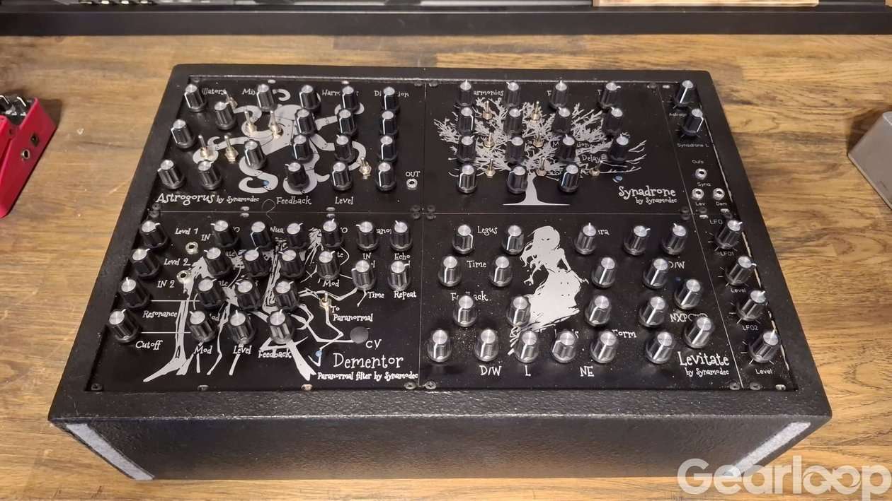 4 bestar i en. The Synamodec Saga is essentially a supergroup of Synamodec’s signature noise and destruction synths. Featuring an array of their greatest hits, the Saga includes Astrogorus, Synadrone, Dementor and Levitate. There are internal routing options, or patch each panel to their own channel for quadraphonic chaos. SAGA is a very rare beast. Byggd på beställning. Finns inte många exemplar ex av denna apparat.