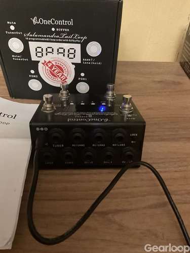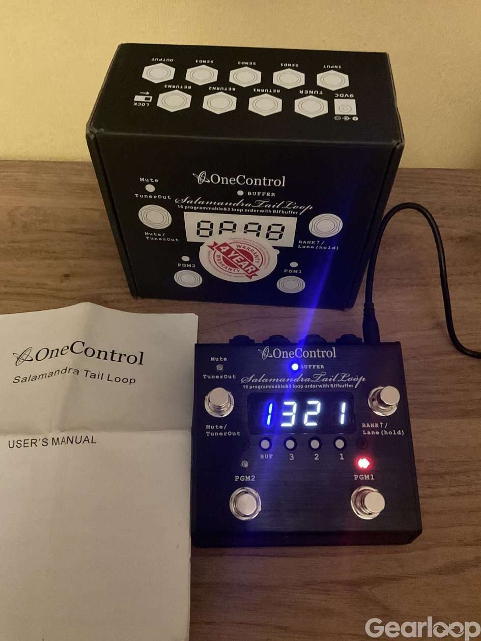 The One Control Salamandra Tail Loop is a 3 loop programmable switcher with effect order, input buffer and tuner out. This pedal not only lets you switch between three different loops, it is also capable of re-ordering the loops in 16 different programs such as 1-2-3, 3-2-1, 2-3-1, etc. The Salamandra Tail Loop is compact and portable, housed in a tough aluminium casing, with a lock switch mounted to prevent any program-changes made by on-stage mishaps. Powered by a standard DC9V adapter.