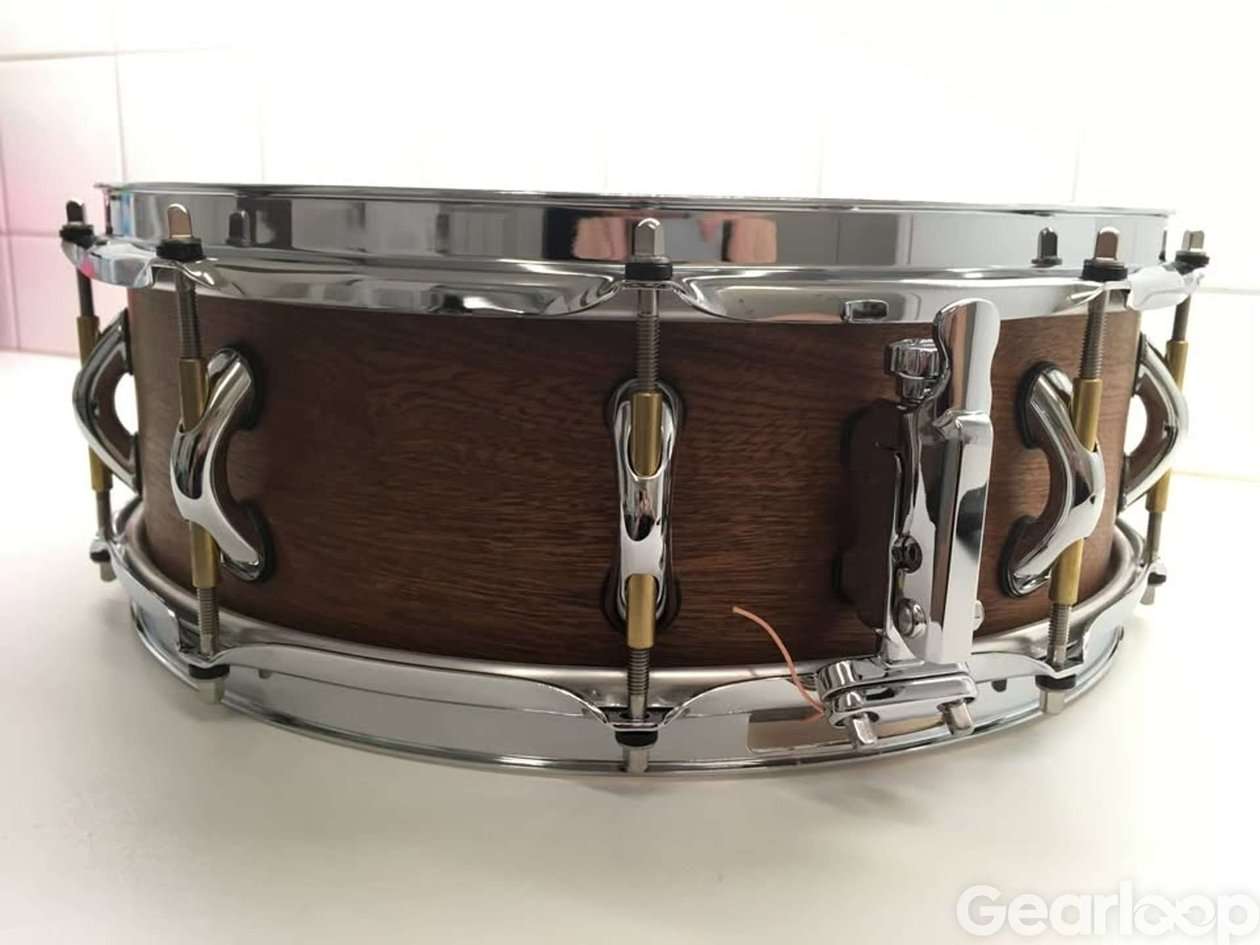 Väldigt speciell trumma, med underbar hardware med bl a mässingsdetaljer och Gladstonemekanik för sejaren. Skickar med en extra sejarmatta.
