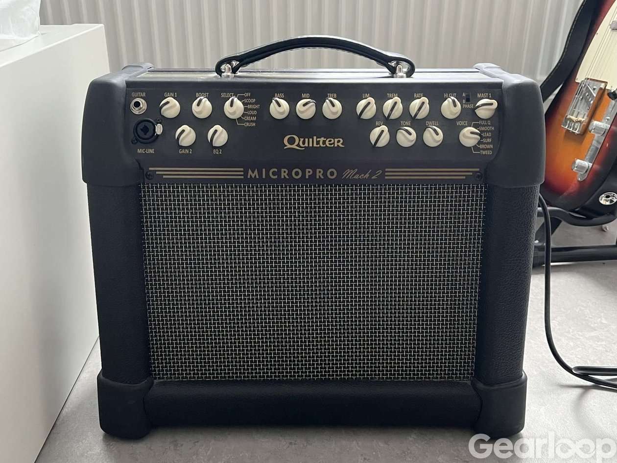 Säljes en Micropro Mach 2 transistorstärkare med många funktioner och inbyggda effekter. Väldigt mångsidig förstärkare, perfekt för gig med två ingångar, line out, trebands-EQ, bland annat. Quilter-stärkare är kända för sitt naturliga ljud, bra förstärkaremuleringar och byggkvalitet.