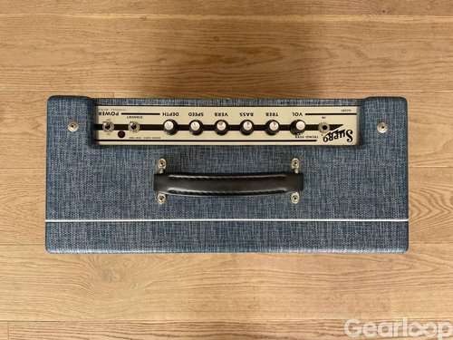 Har en Supro 1622RT i superskick till salu. 25 Class A rörwatt, 10" högtalare, reverb och tremolo, dessa sitter i omvänd ordning mot vad de brukar och låter helt magiskt ihop. Den spelar starkt trots sin storlek men vrider man upp rejält så mättar den och distar fantastiskt! Tonen är oerhört responsiv och det är riktigt kul att spela på den crankad.