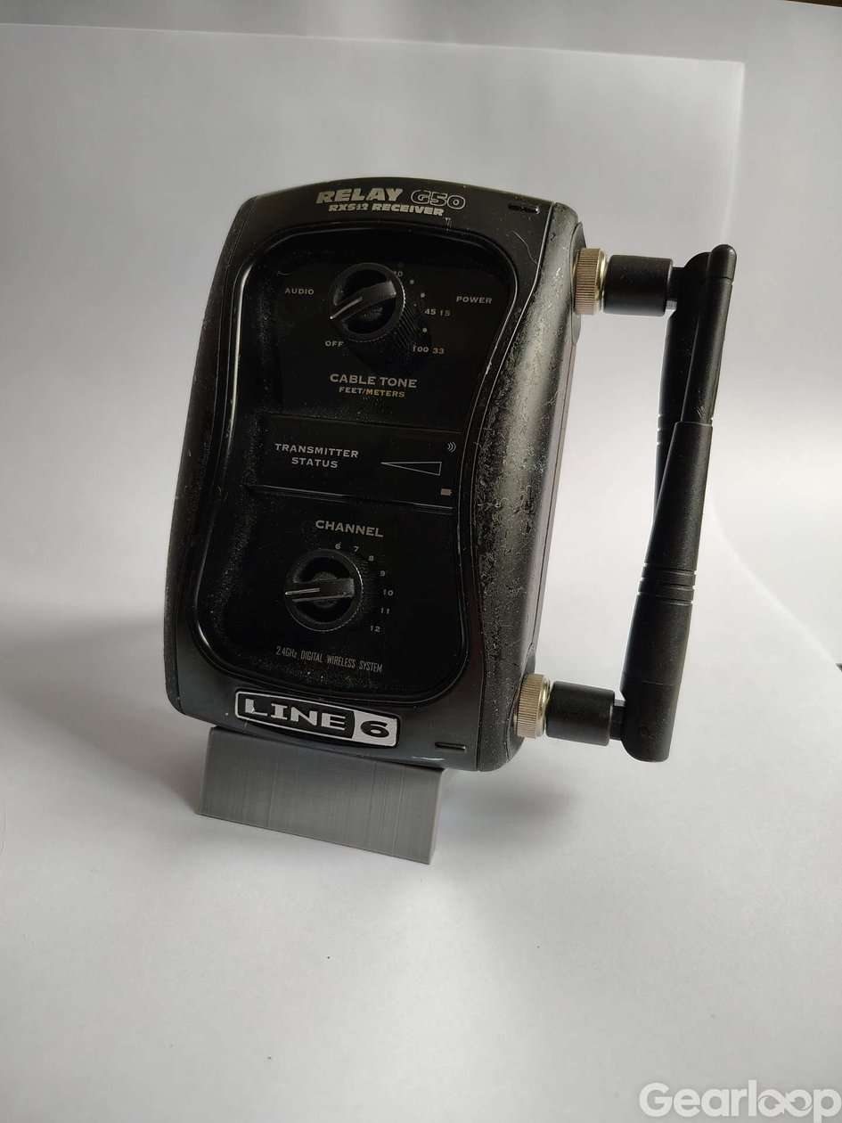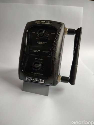 Line 6 Relay G50 trådlöst gitarrsystem. Systemet består av sändare och mottagare för trådlös överföring av gitarrsignal. Enheten har reglage för kabelton, kanalval och nivåinställningar samt antenn för signalmottagning. Passar som gitarrtillbehör för elgitarr eller andra elförstärkta stränginstrument där man vill spela utan kabel mellan instrument och förstärkare eller effektkedja.