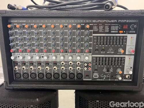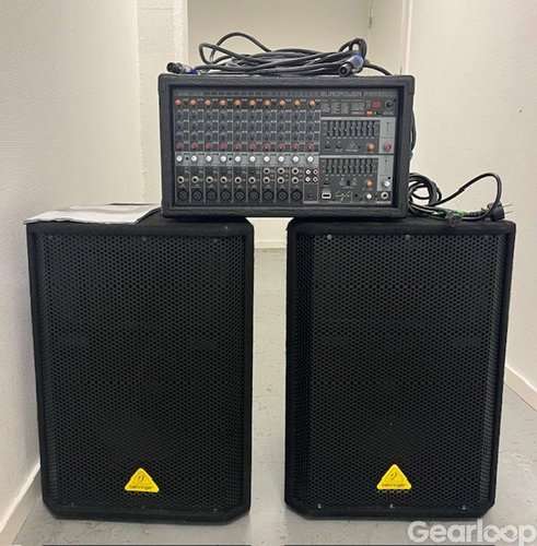 Powermixer: Behringer Europower PMP2000D (ca 2x500W RMS vid 8 ohm, upp till ca 2000W max i bryggläge)