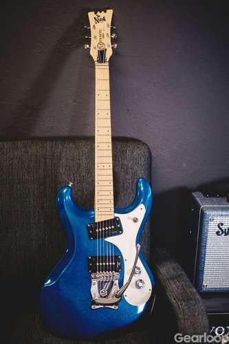 Kroppen, även om den har en något tunnare profil jämfört med många gitarrer av denna era, är tyngre (hela gitarren väger runt 4,1 kg) eftersom den är gjord av al istället för det mer vanligt använda lind, vilket gör det för ökat sustain och mellanregister, fin resonans rent akustiskt över hela gitarren. Vacker, blå-sparkle nitrocellulosa lack som är lite svårfångad i bilderna. Den har ett par små repor här och där annars är den i utmärkt skick. Allt original genomgående förutom ett nytt nollband för förbättrad intonation och stränghöjd över hela halsen och nya Kluson-tuners som inte krävde något påträngande ingrepp alls för att installeras, inget fel på originalen, jag kände bara att de var lite lösa. De kommer självklart att ingå i originalfodralet komplett med nyckel som också är i väldigt bra skick. Heta single coil P90-liknande mickar (de båda mäter strax över 12 kOhm-märket) med en extra jordsladd som går under de aluminium-tejpade mick-fickorna, en av dessa designförbättringar från sent 80/tidigt 90-talet för att minimera feedback, ganska snillrikt.