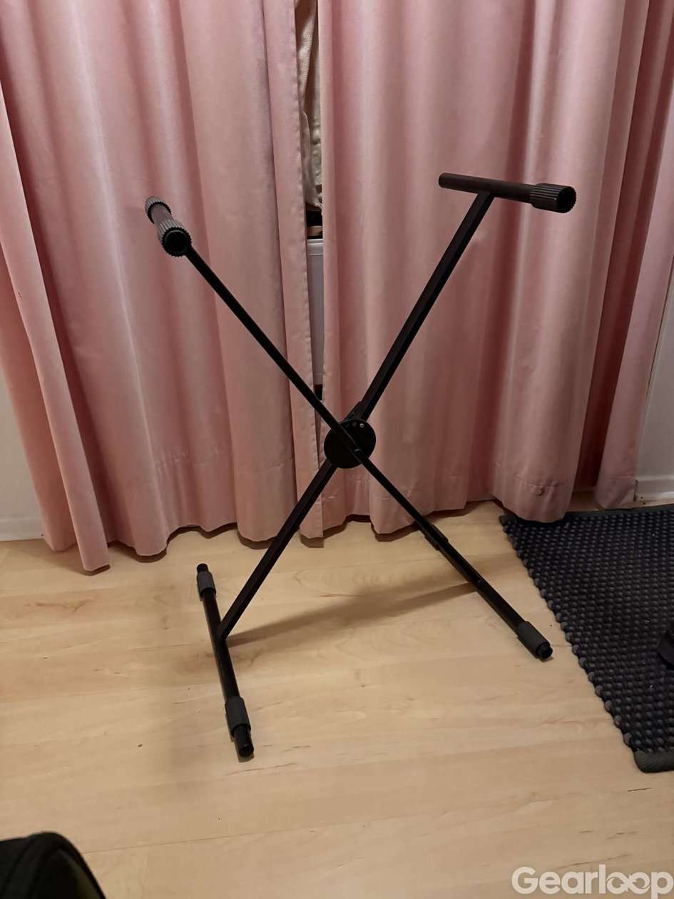 Stativ från Q-ex. Låsmekanismen funkar fint! Däremot saknas ett gummiskydd på en sida av stället. Därför det låga priset.