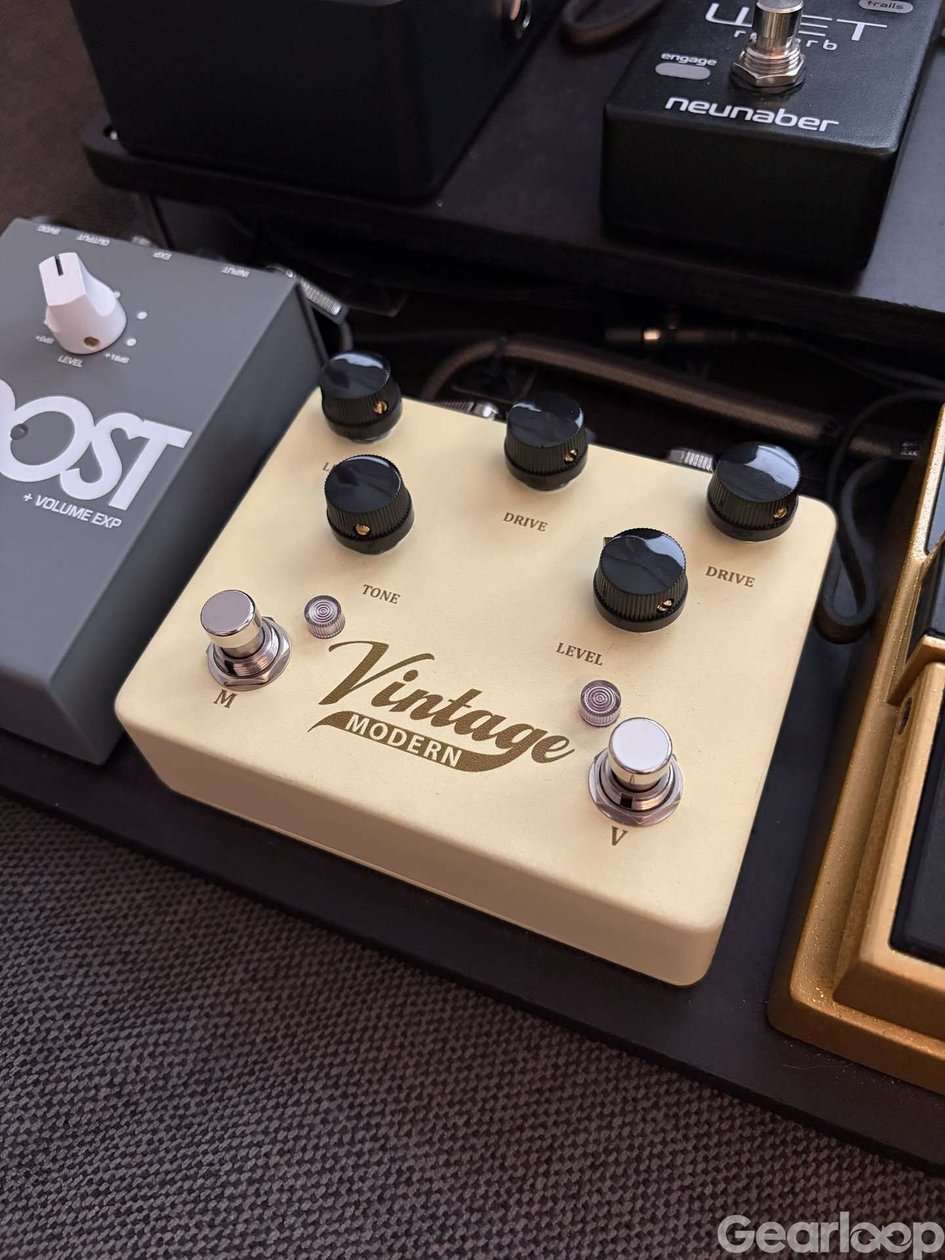 Lovepedal Vintage Modern i Cream färg, högra sidan är baserad på COT 50 och är en low gain med något av en Tweed-karaktär. Vänstra sidan är baseras på en Purple Plexi och gör allt från low-mid/high gain, stackas otroligt fint med varandra!